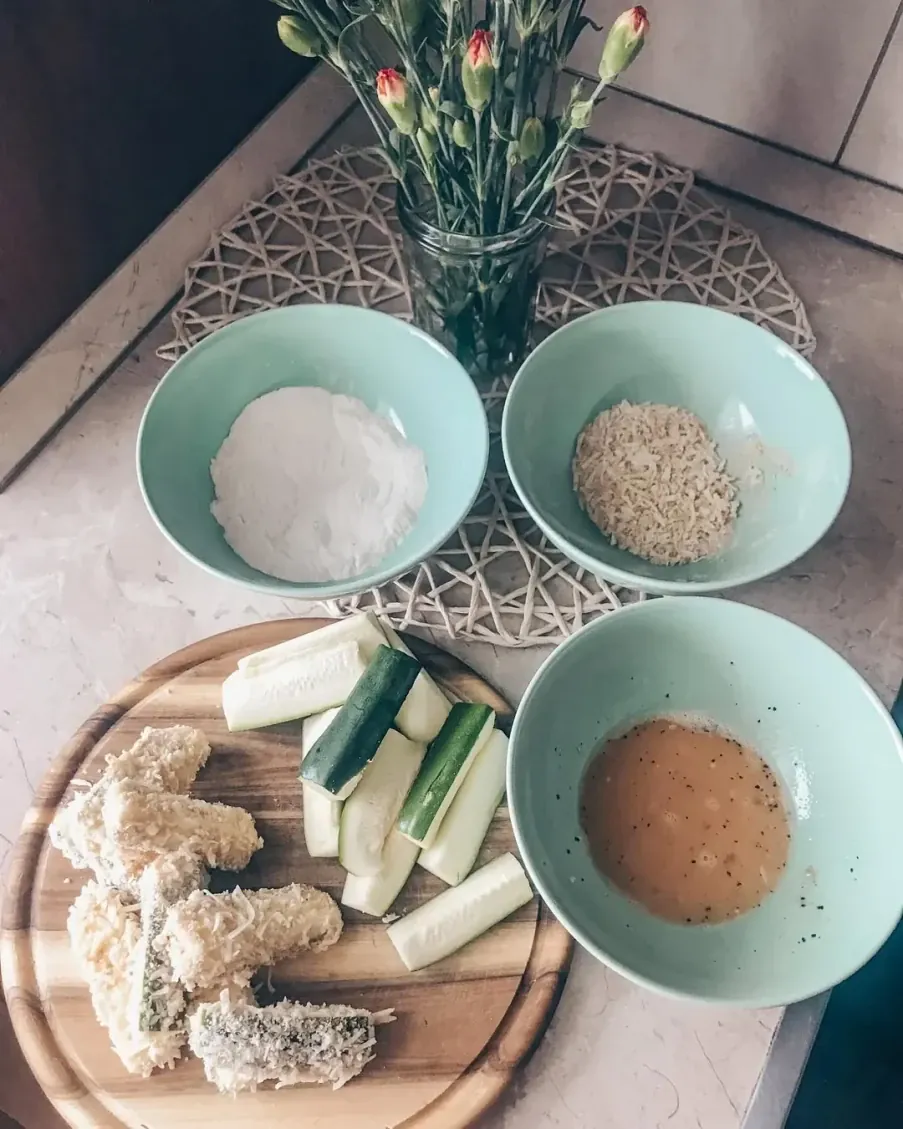• Jei cukinijos sultys labai gausios, jas galite šiek tiek nusausinti popieriniu rankšluosčiu prieš apvoliojimą.