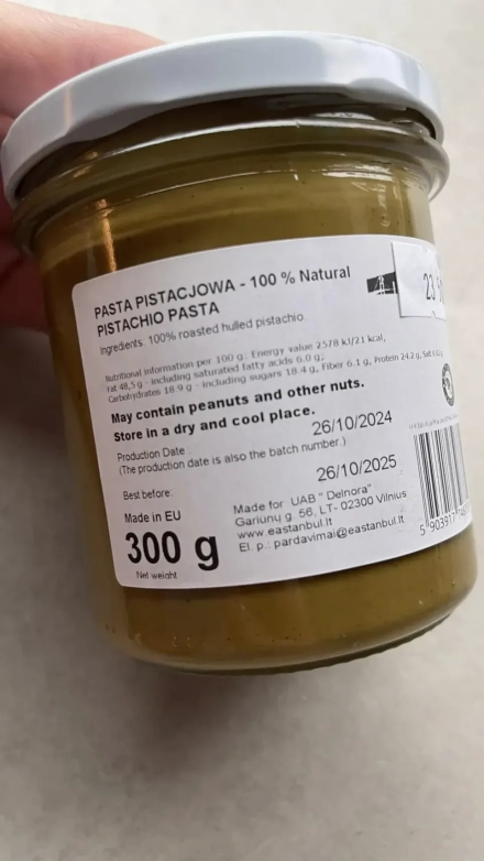 • Pistacijų pasta: 60 g