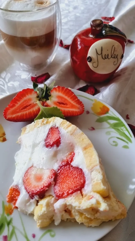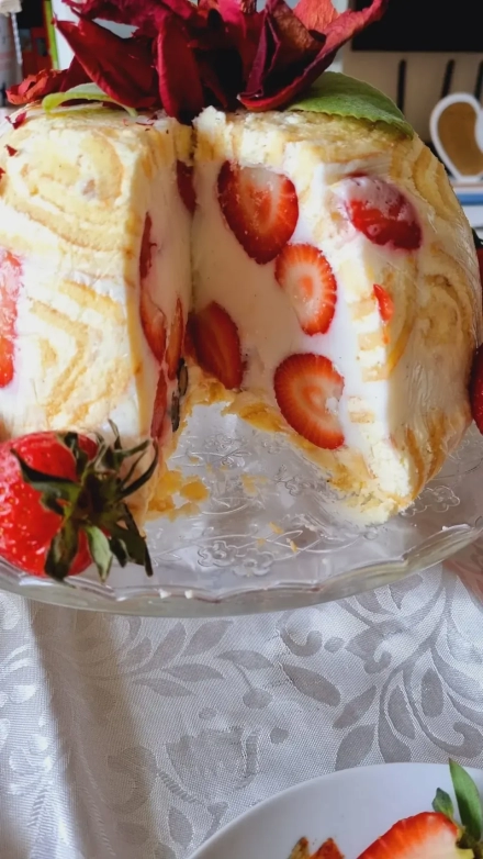 Kuršėnų vyniotinio tortas su braškėmis