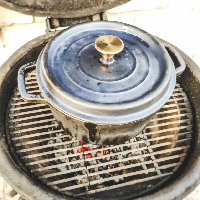 Profesionali pastaba apie maisto saugą: pažandė dėl riebalų sluoksnio ilgai išlaiko šilumą, tačiau vidinė temperatūra turi pasiekti bent 70–72 °C. Naudokite mėsos termometrą – taip išlaikysite sultingumą ir saugumą.