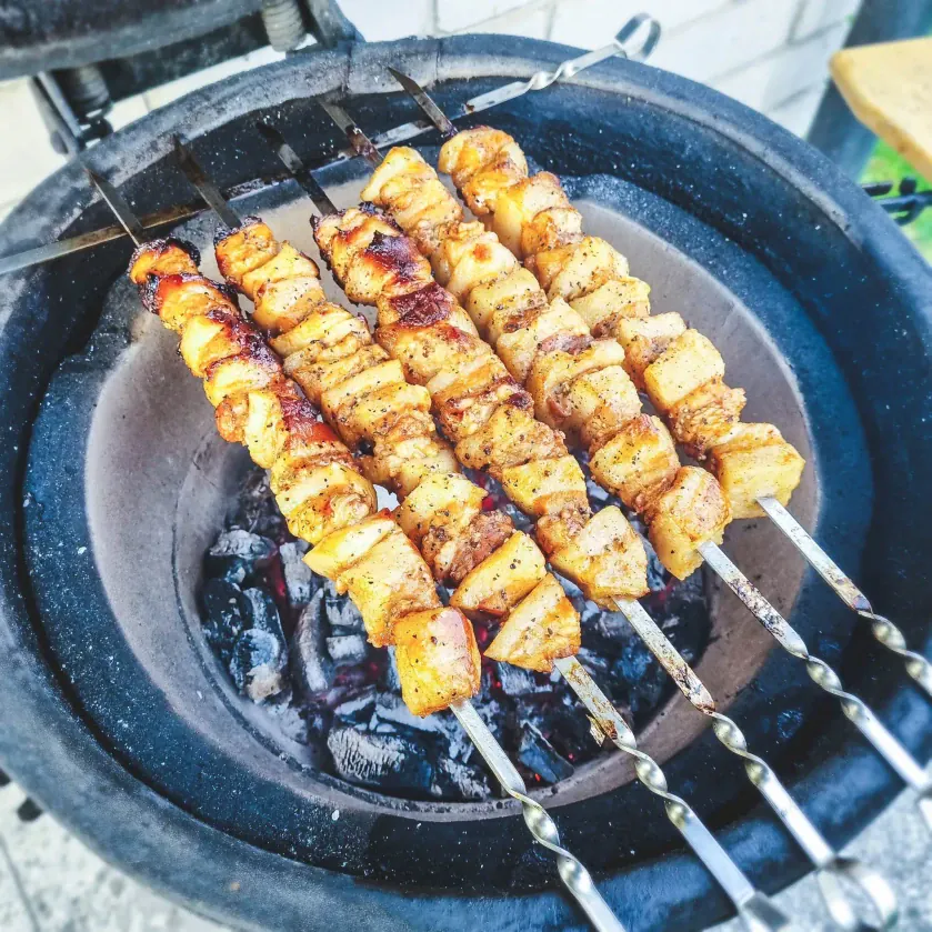 Išbandyta versija: šis receptas ne kartą gamintas šeimos susibūrimuose ir testuotas skirtingose kepsninėse – nuo klasikinės šašlykinės iki keramikinio „kamado“. Kiekvieną kartą rezultatas išliko stabiliai sultingas. Virtuvės šefo patarimas: jeigu norite dar ryškesnės dūmo natos, į žarijas įmeskite kelis obuolinių ar vyšnių medienos gabalėlius. Glajų tepkite tik tuomet, kai mėsa jau apskrudusi – cukrūs nespės svilti, o paviršius blizgės ir kvepės karamele.