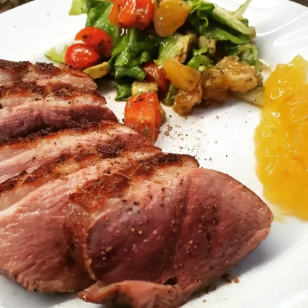 Kepta anties krūtinėlė kamado tipo kepsninėje